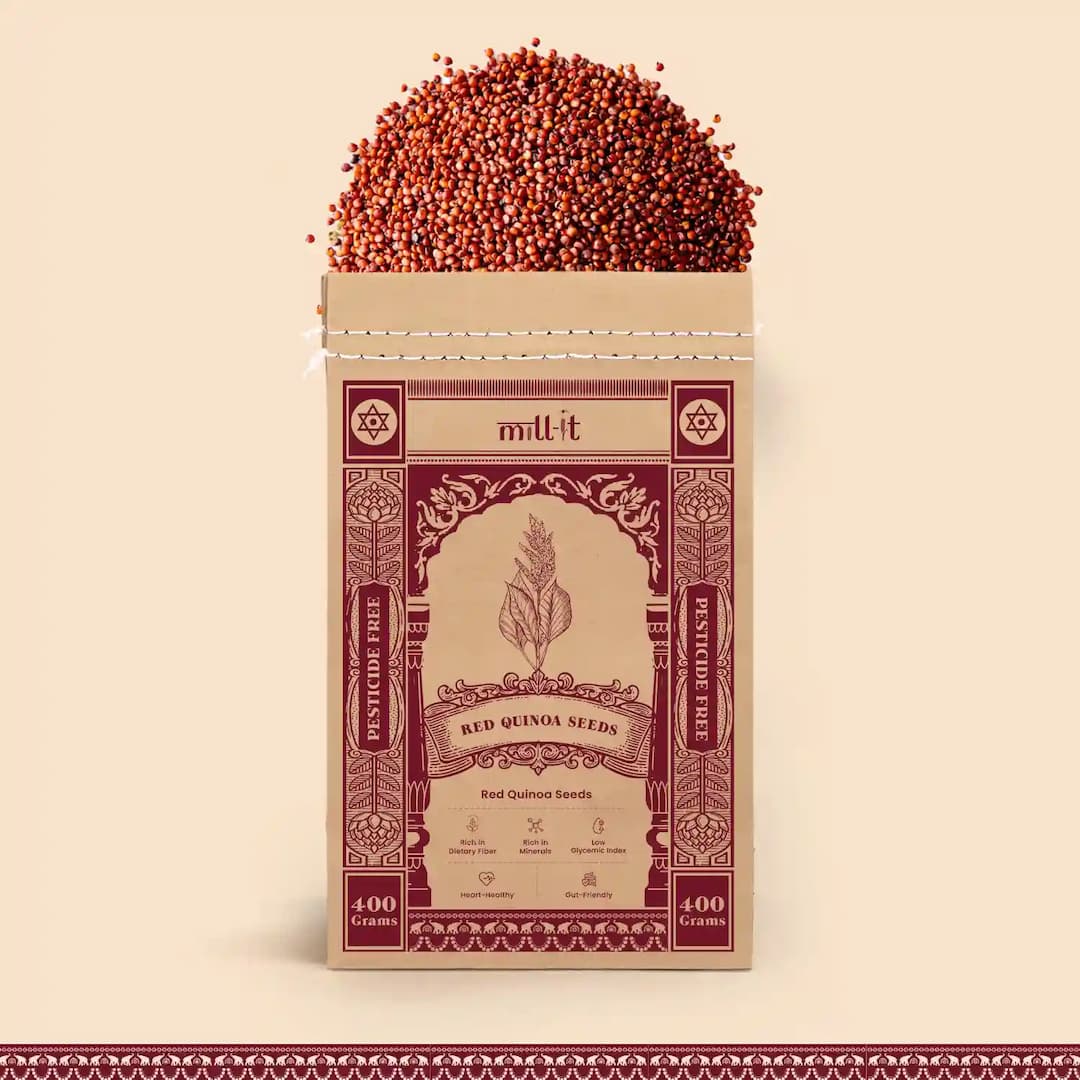 Enjoy your meals with Mill-it’s Red Quinoa Seeds—naturally gluten-free and packed with plant-based protein, fiber, and essential minerals. Known for supporting digestion, boosting energy, and promoting heart health, these nutrient-dense seeds, with their nutty flavor and rich nutrition profile, are perfect for khichdi, pancakes, or baked treats - an ideal choice for modern, mindful eating.